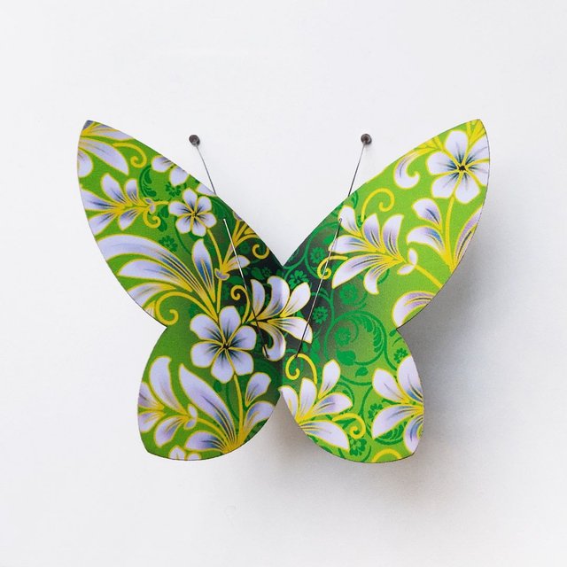 Papillon-magnet en papier imprimé recto-verso.