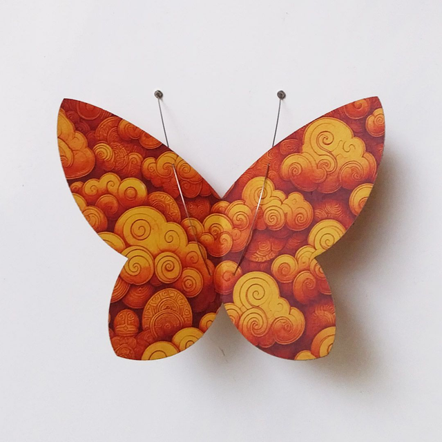 Sur cette référence, les motifs et leurs emplacements sont les mêmes sur chaque papillon.